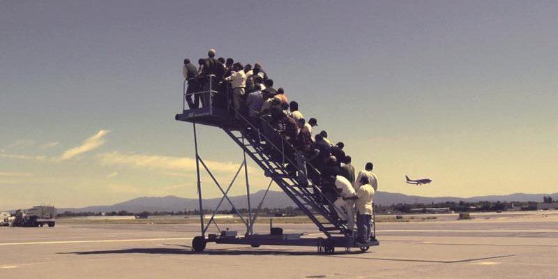 Simon Borja, et Thierry Ramadier racontent comment, selon eux « l’imaginaire actuel de la mobilité distille une somme de représentations constamment réactualisées, et se légitime en réinscrivant tous les déplacements à sa mesure. » (…) « L’argumentaire est d’autant plus puissant qu’il coordonne en un mot progrès, modernité, économie de marché, mondialisation, multiplication des trajets, kilomètres parcourus… »